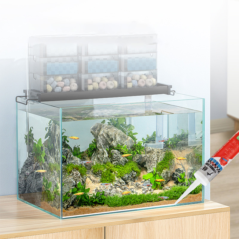 El adhesivo para peceras de acuario Guangjiao 7132 es un sellador de alto rendimiento diseñado para unir acuarios y peceras ornamentales. Su sellador especialmente formulado ofrece excelente resistencia al agua y biocompatibilidad a largo plazo, manteniendo propiedades físicas estables en ambientes húmedos. La capa adhesiva elástica formada después del curado resiste eficazmente los cambios en la presión del agua y previene efectos adversos sobre la vida acuática. Es adecuado para empalmar y sellar grandes tanques de vidrio y acuarios acrílicos. El adhesivo es transparente y bonito después de su aplicación, sin afectar la estética general.
